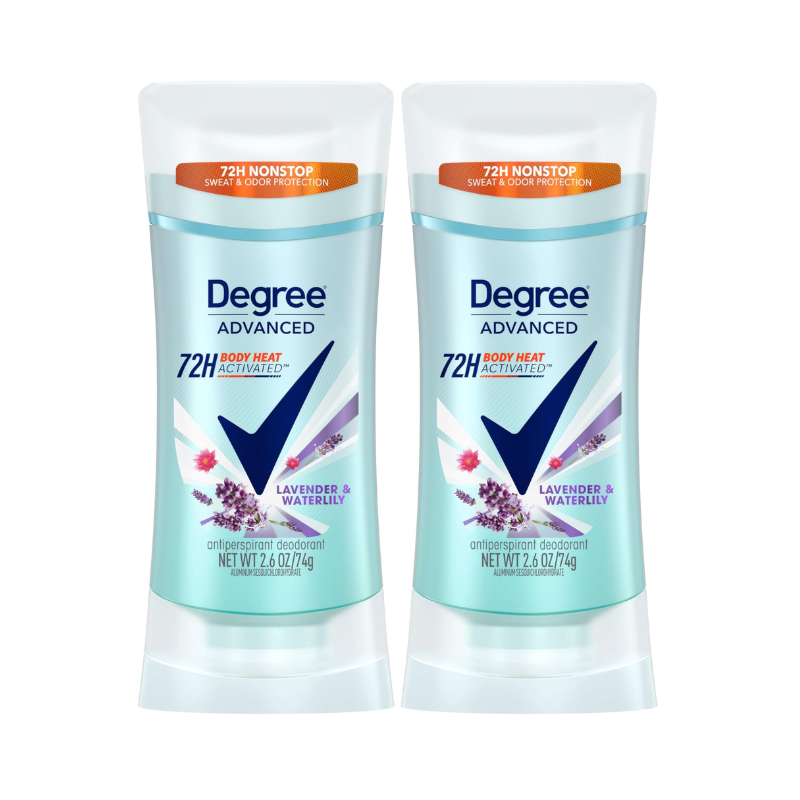 With up to 72-hour sweat and odor protection, Degree Lavender Waterlily Deodorant ensures reliable performance during long days, work hours, or active routines.
